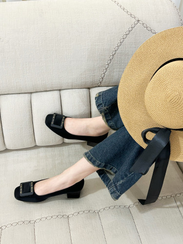 کفش خانمانه تک رنگ مشکی پاشنه پنج سانت زنانه